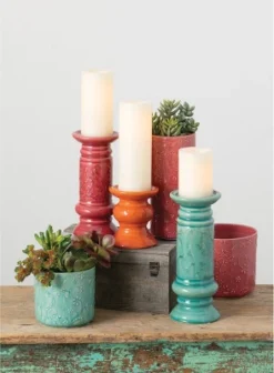 Sullivans Set Of 3 Floral Relief Flower Planter 4.5″H, 4″H & 2.75″H Red